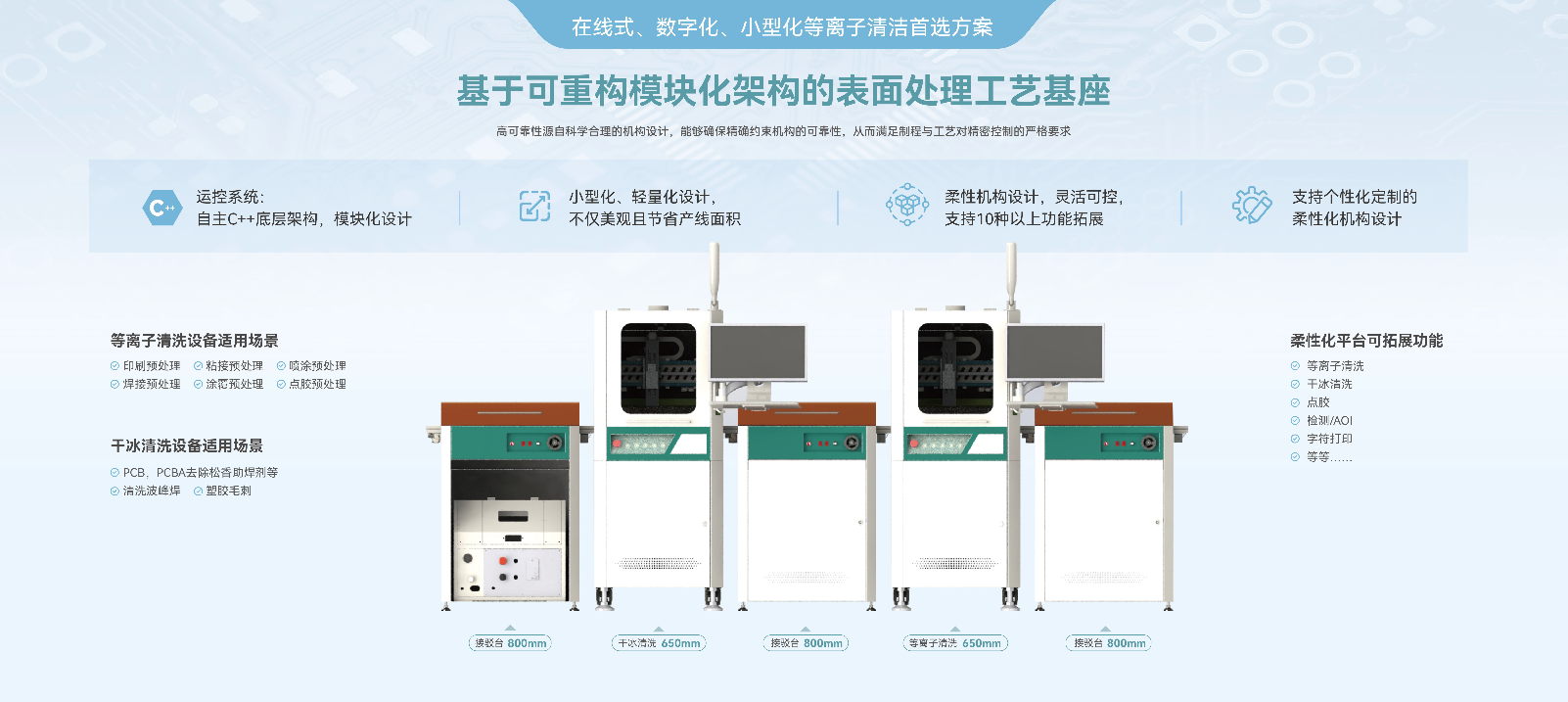 等離子清洗模塊:搭載自研數(shù)字等離子電源,可實(shí)時(shí)監(jiān)控電壓、功率、電流、氣壓等21項(xiàng)參數(shù),精準(zhǔn)清除半導(dǎo)體封裝、無(wú)人機(jī)精密部件表面的納米級(jí)污染物;